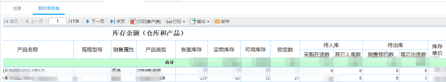 第三步:点击查询即可得到如图库存余额表,检索统计类型。如以仓库和产品为统计类型,统计仓库对应的产品类型在该仓库的库存信息。