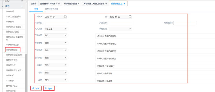 访问路径:报表中心—库存—库存收发明细