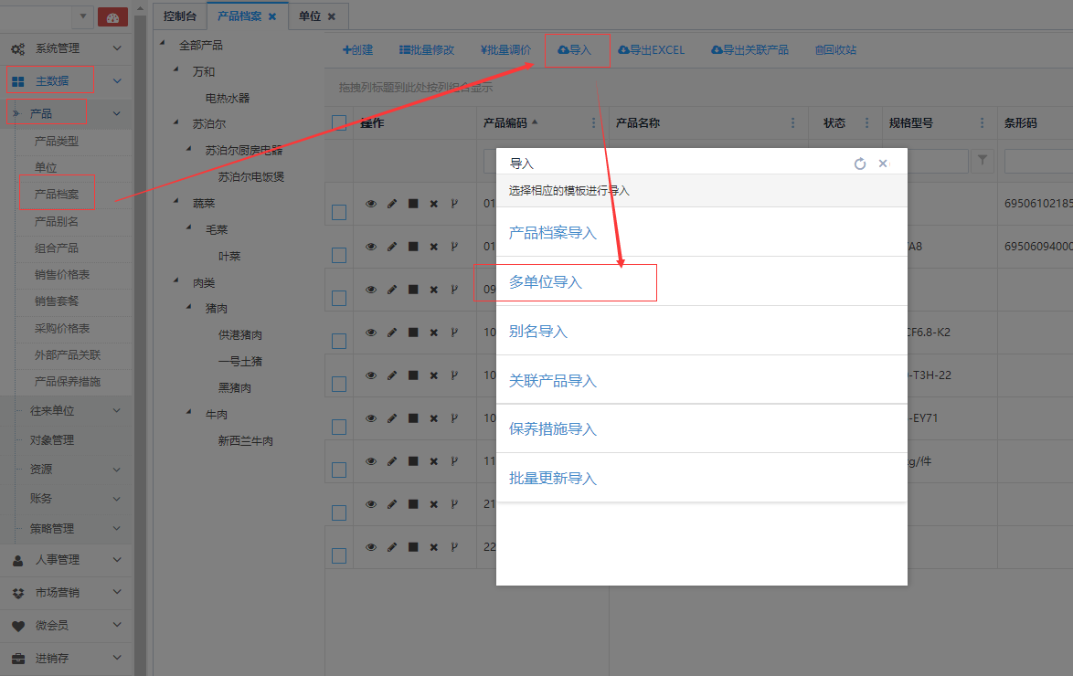有个多单位导入的功能