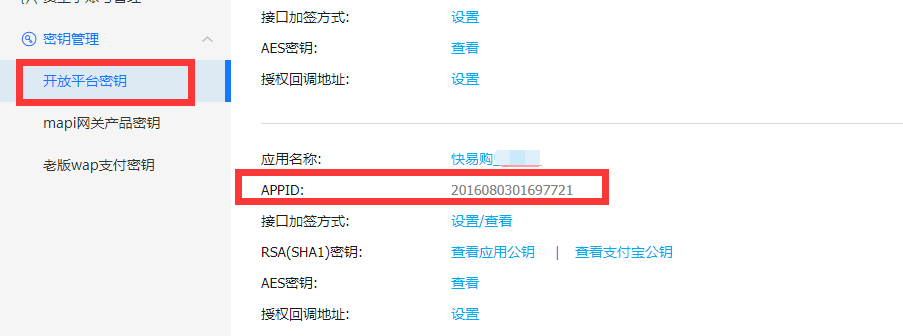 2. 支付宝商户号:上述第7步查看到的APPID