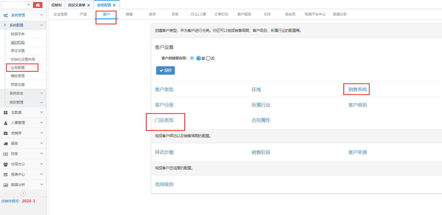 门店类型、销售系统 在【业务配置】维护,这两个是自定义的