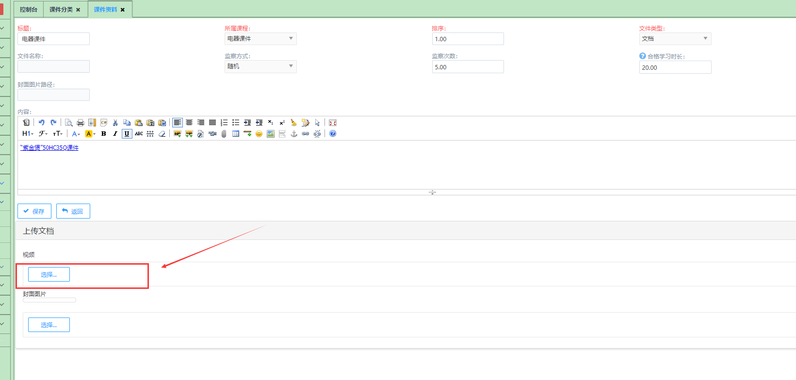 后台课件资料文档上传方式不对
