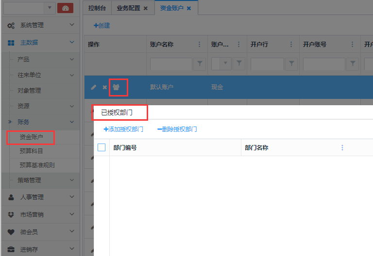 如果“是”,用户只能看到所属部门被授权的资金账户